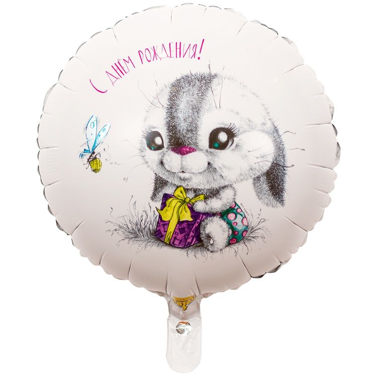 Фольгированный воздушный шар круг, ДР Зайка, 46 см