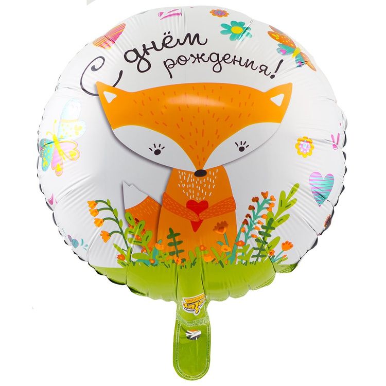 Фольгированный воздушный шар круг, ДР Лиса, 46 см