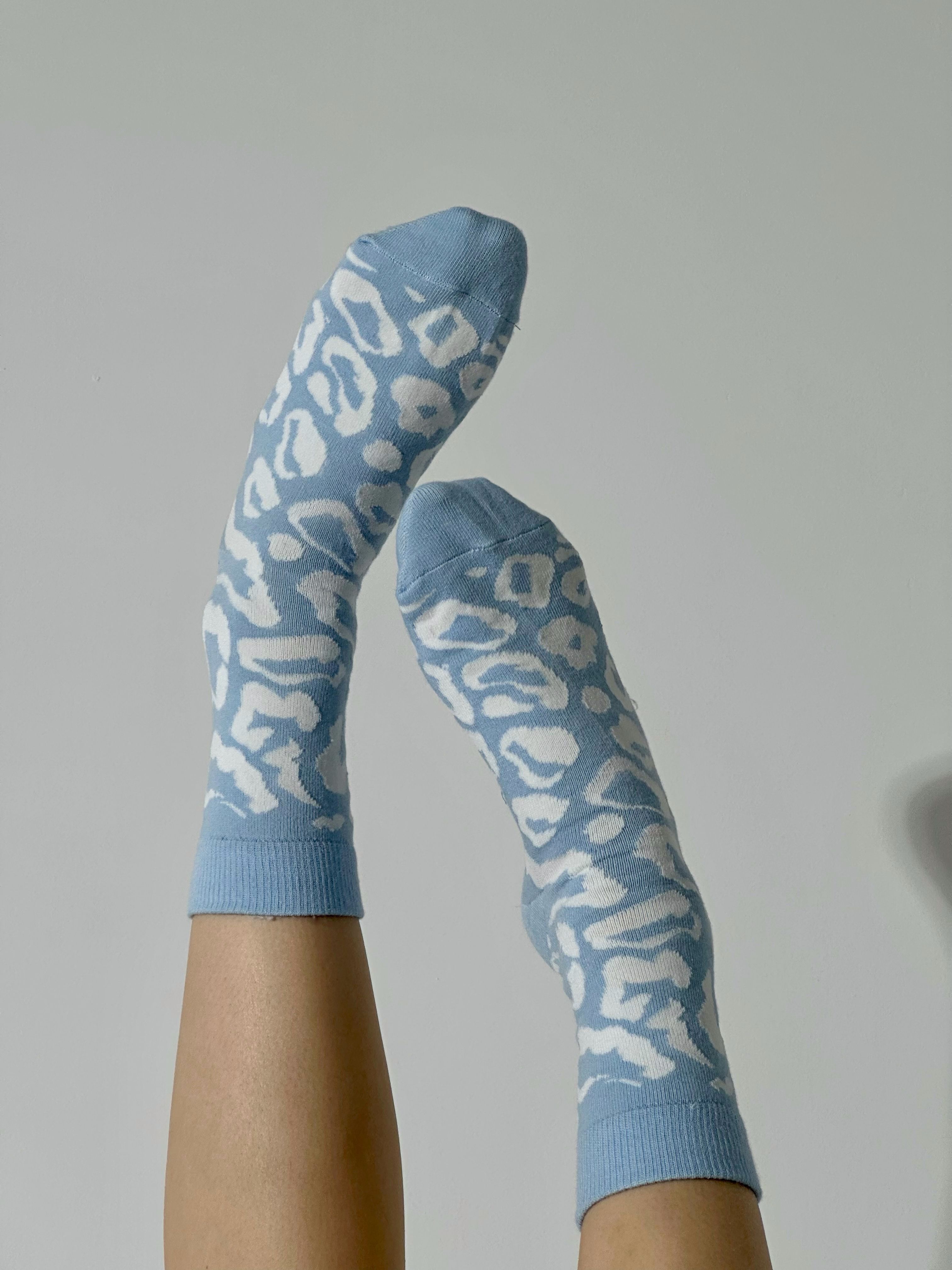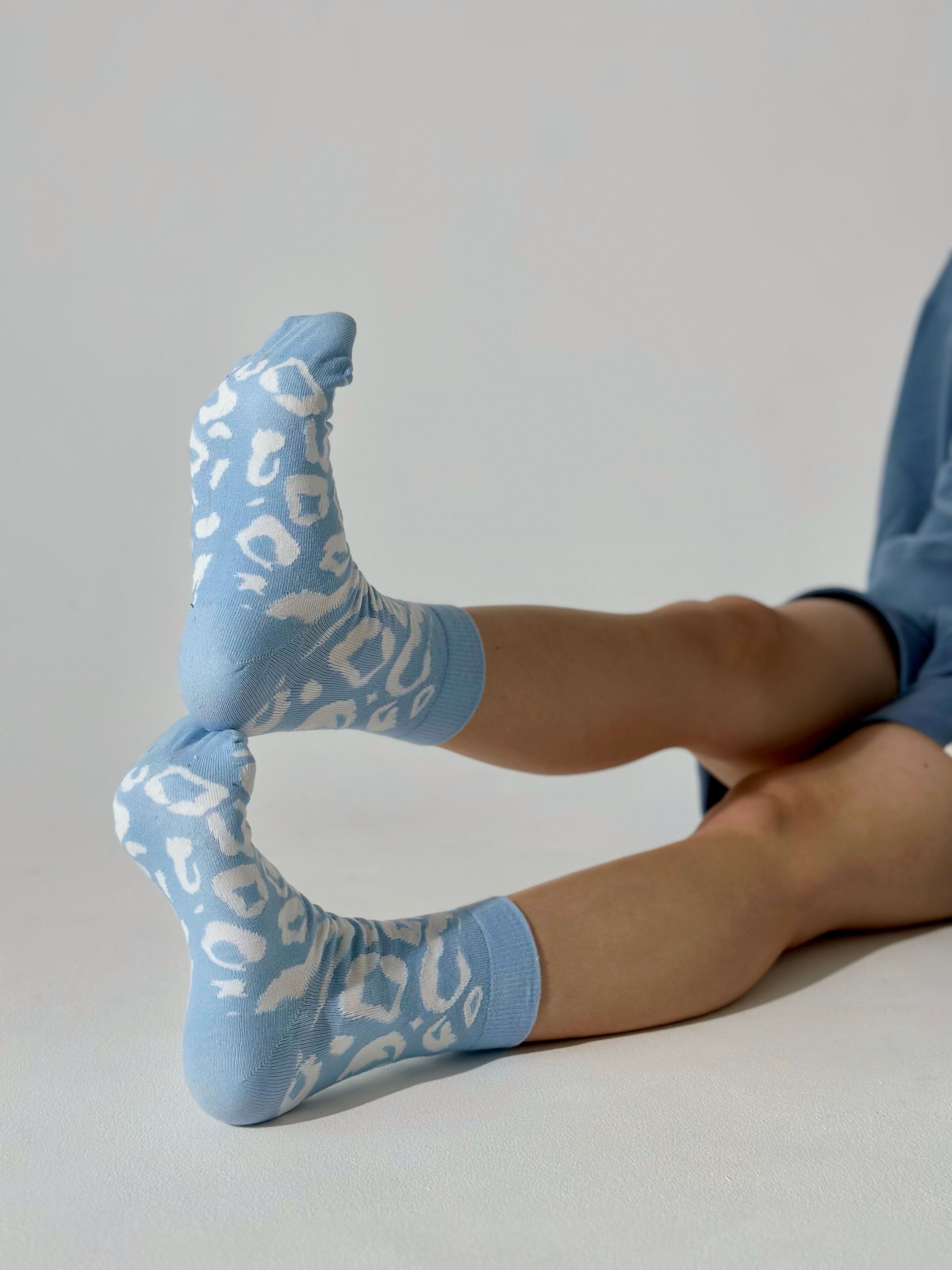 Цвет носков - голубойПринт - леопард