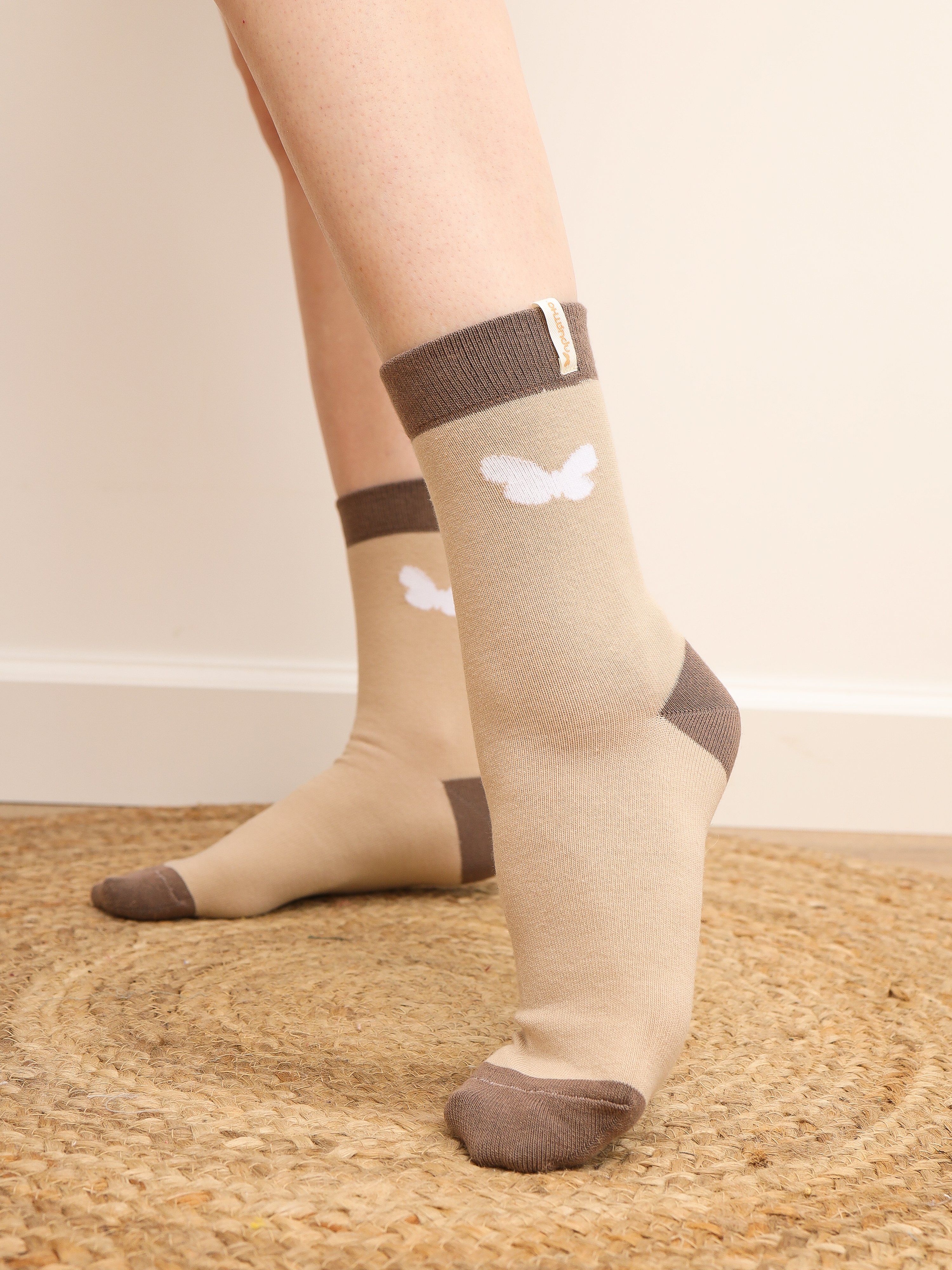 Цвет носков - бежевыйПринт - бабочка