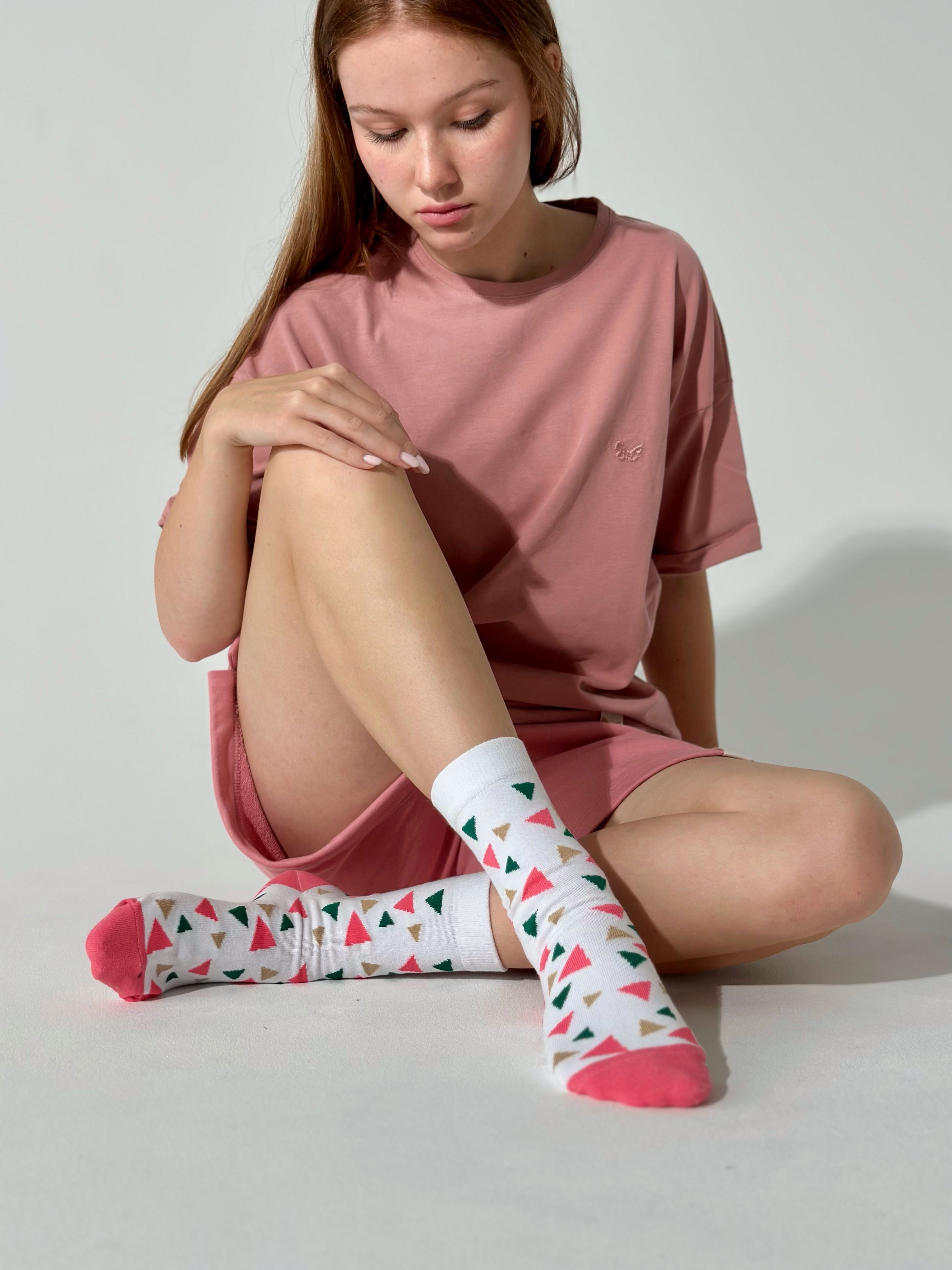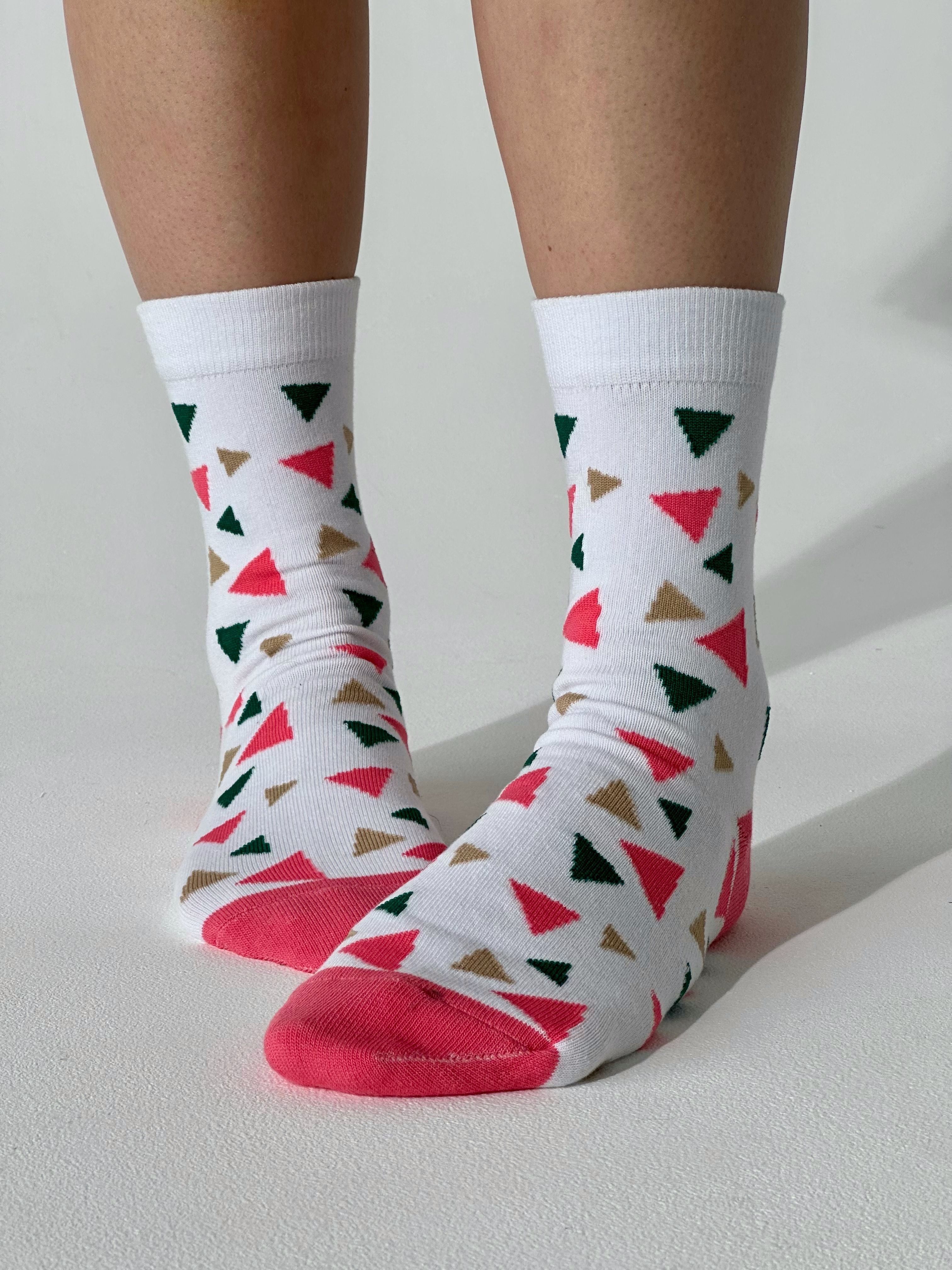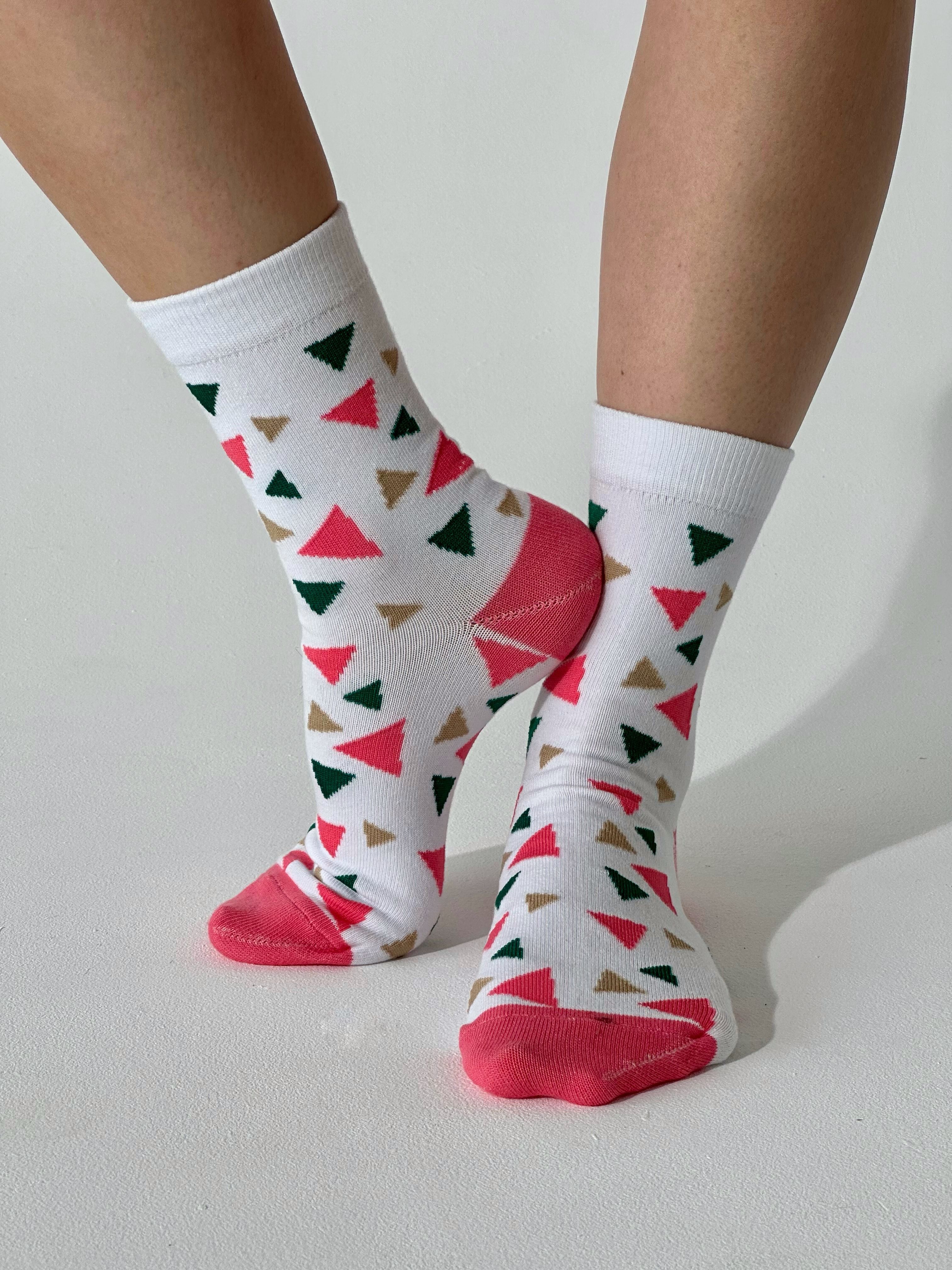 Цвет носков - белыйПринт - разноцветные треугольники