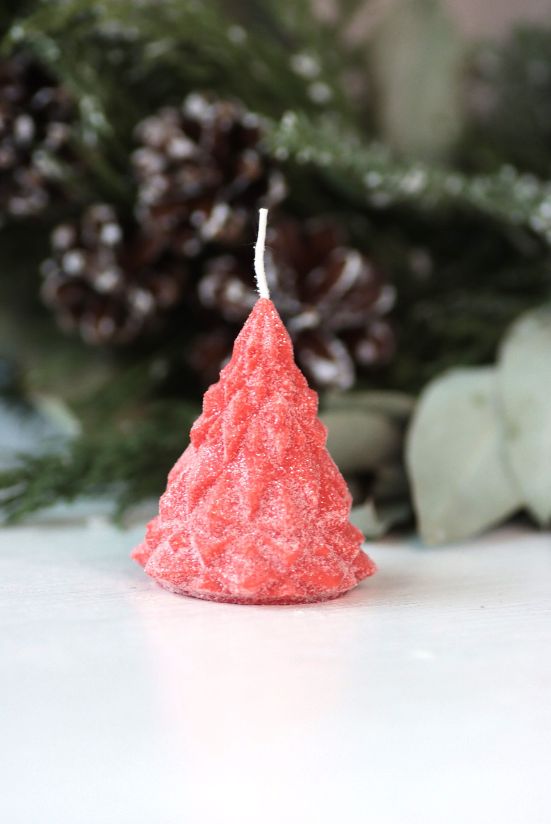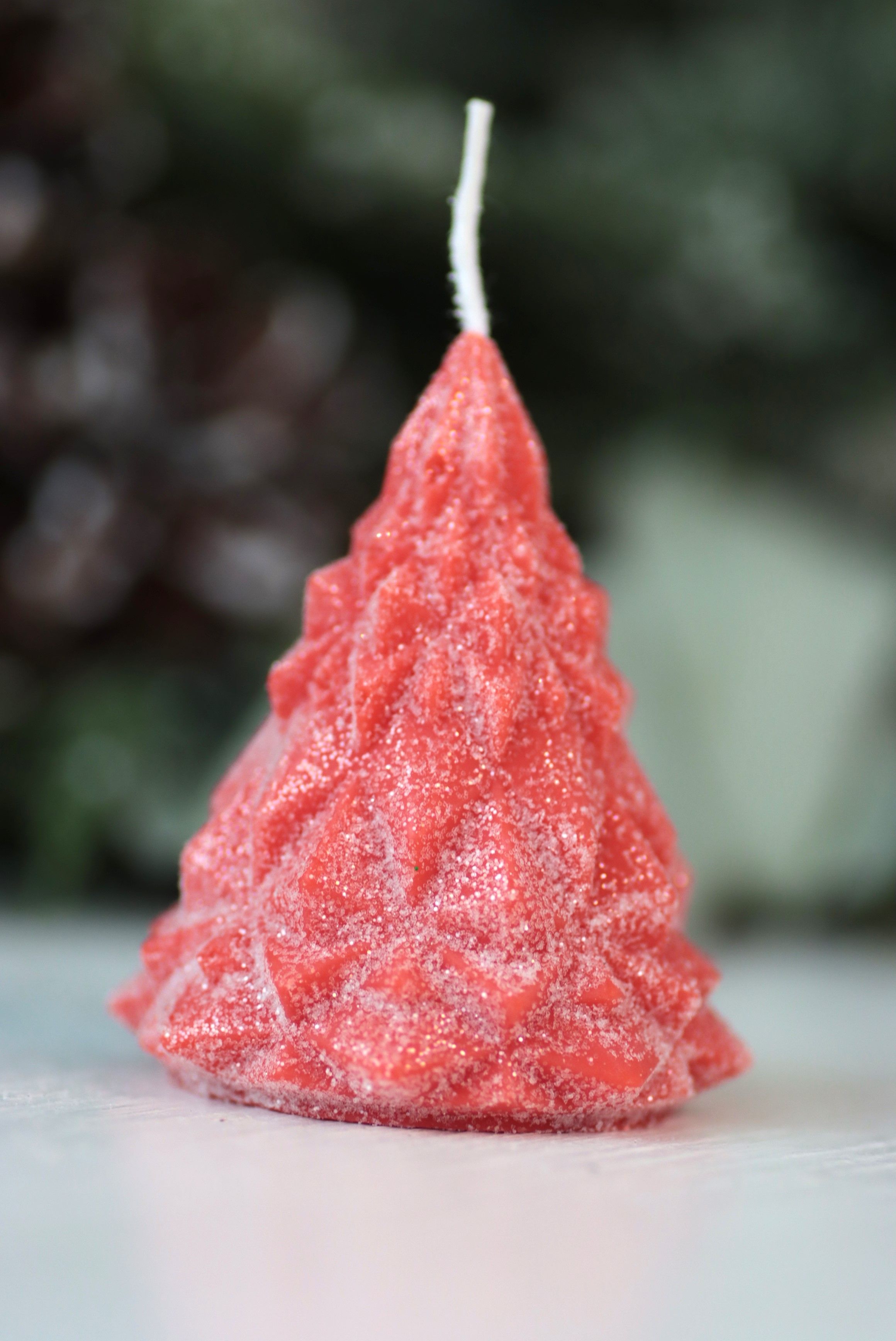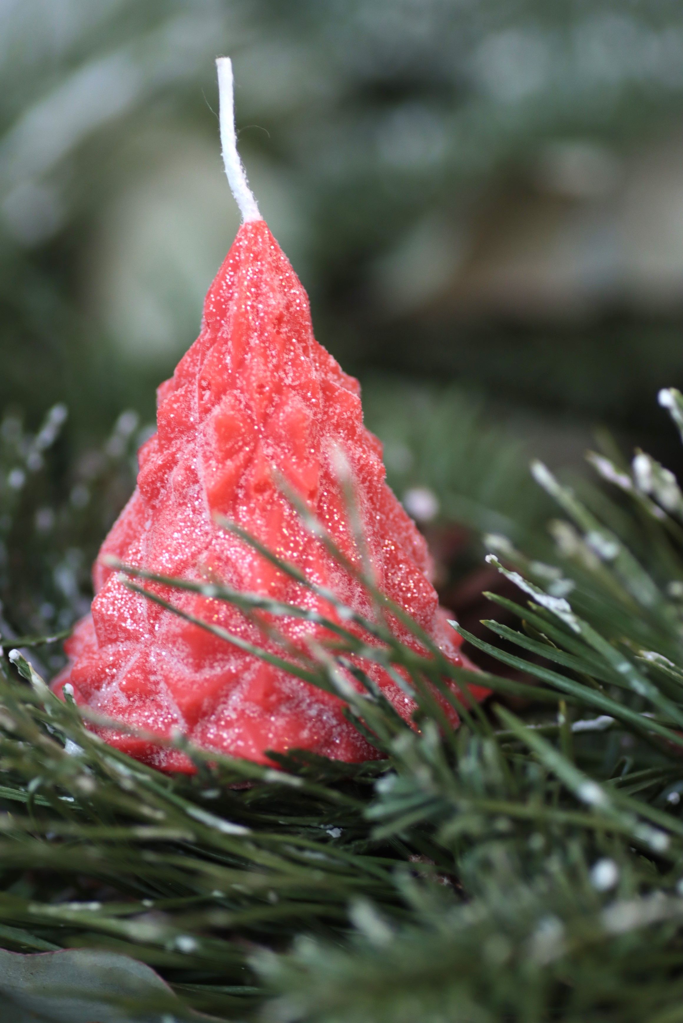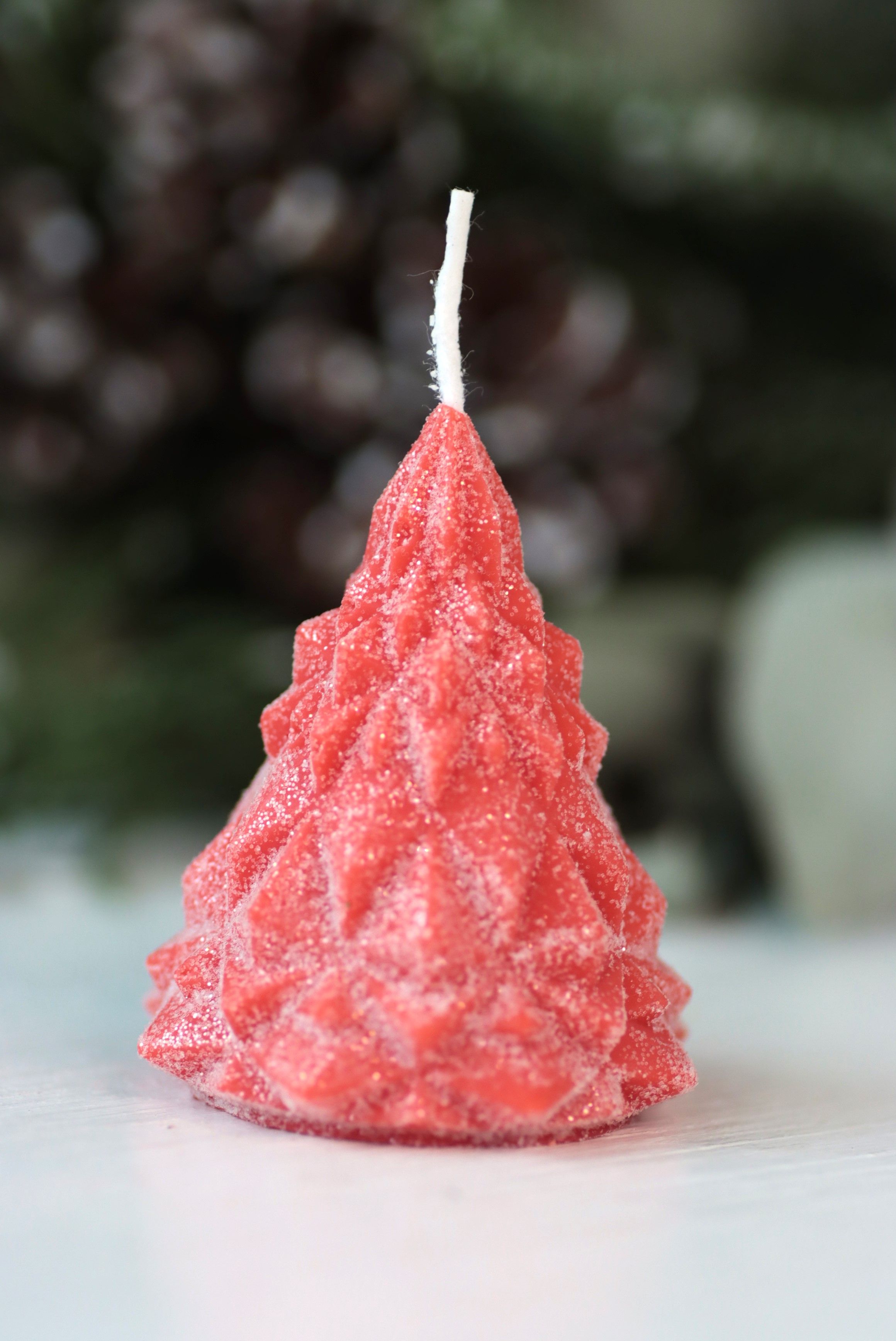 Свеча "Ёлка хрусталь" Алый с блёстками