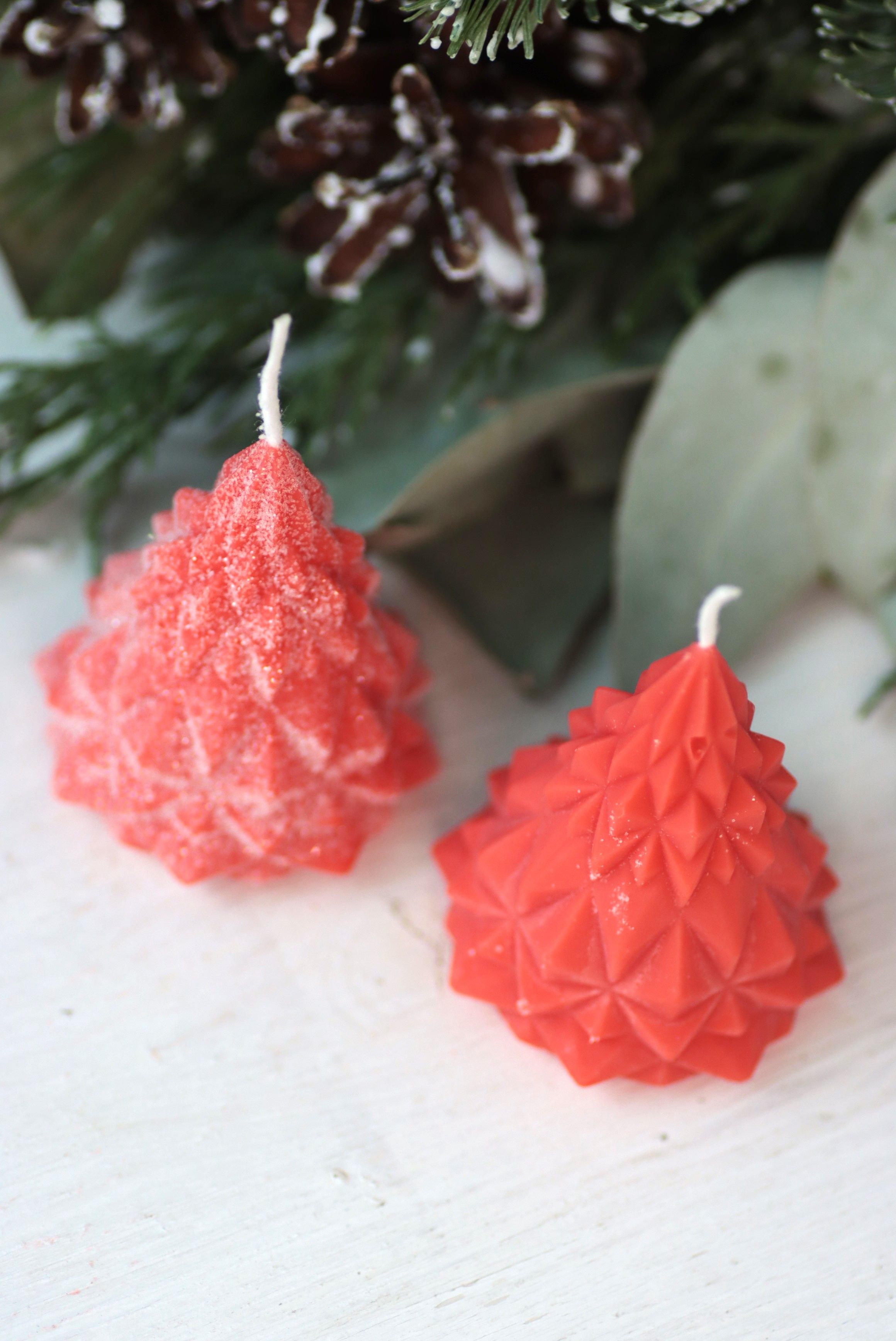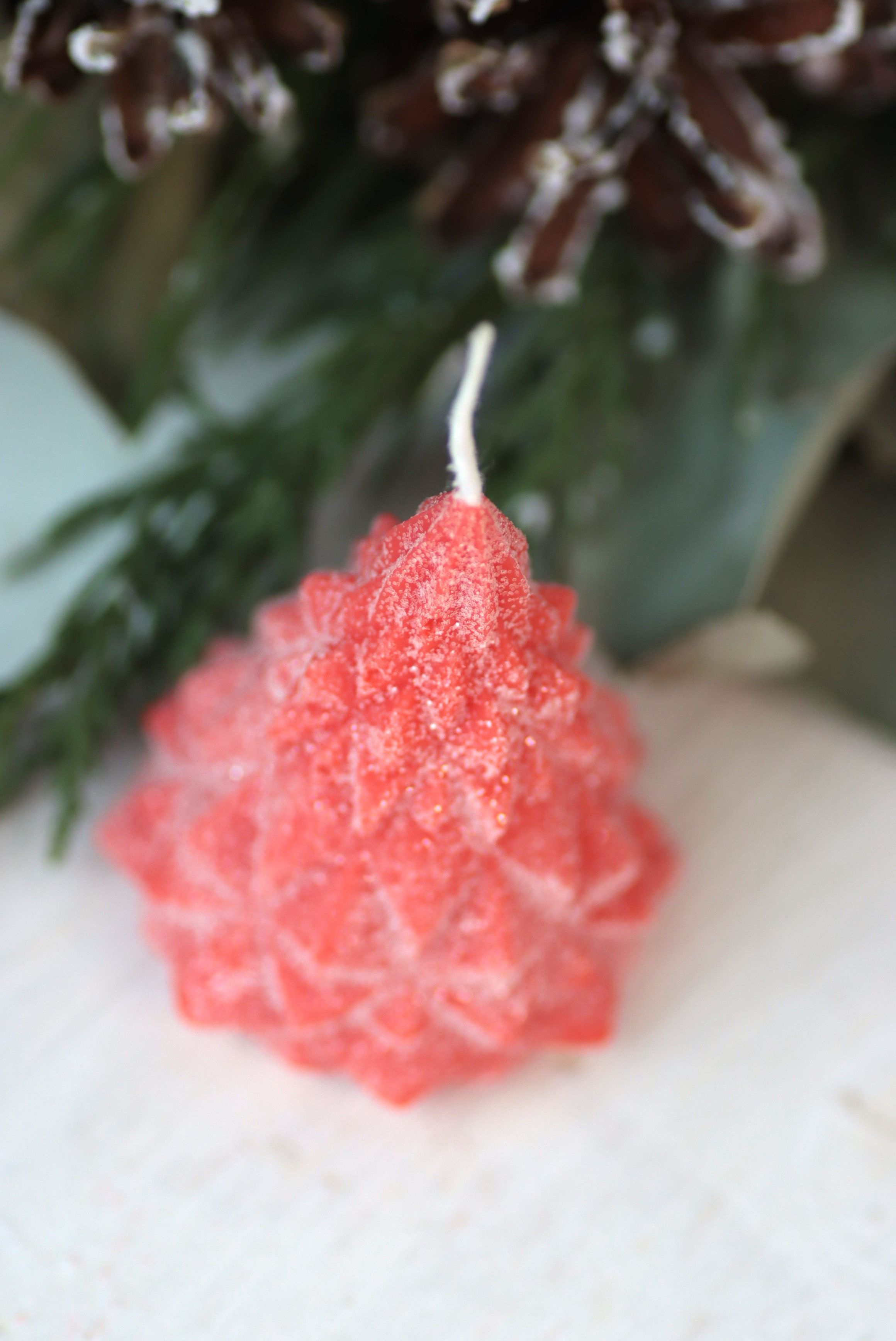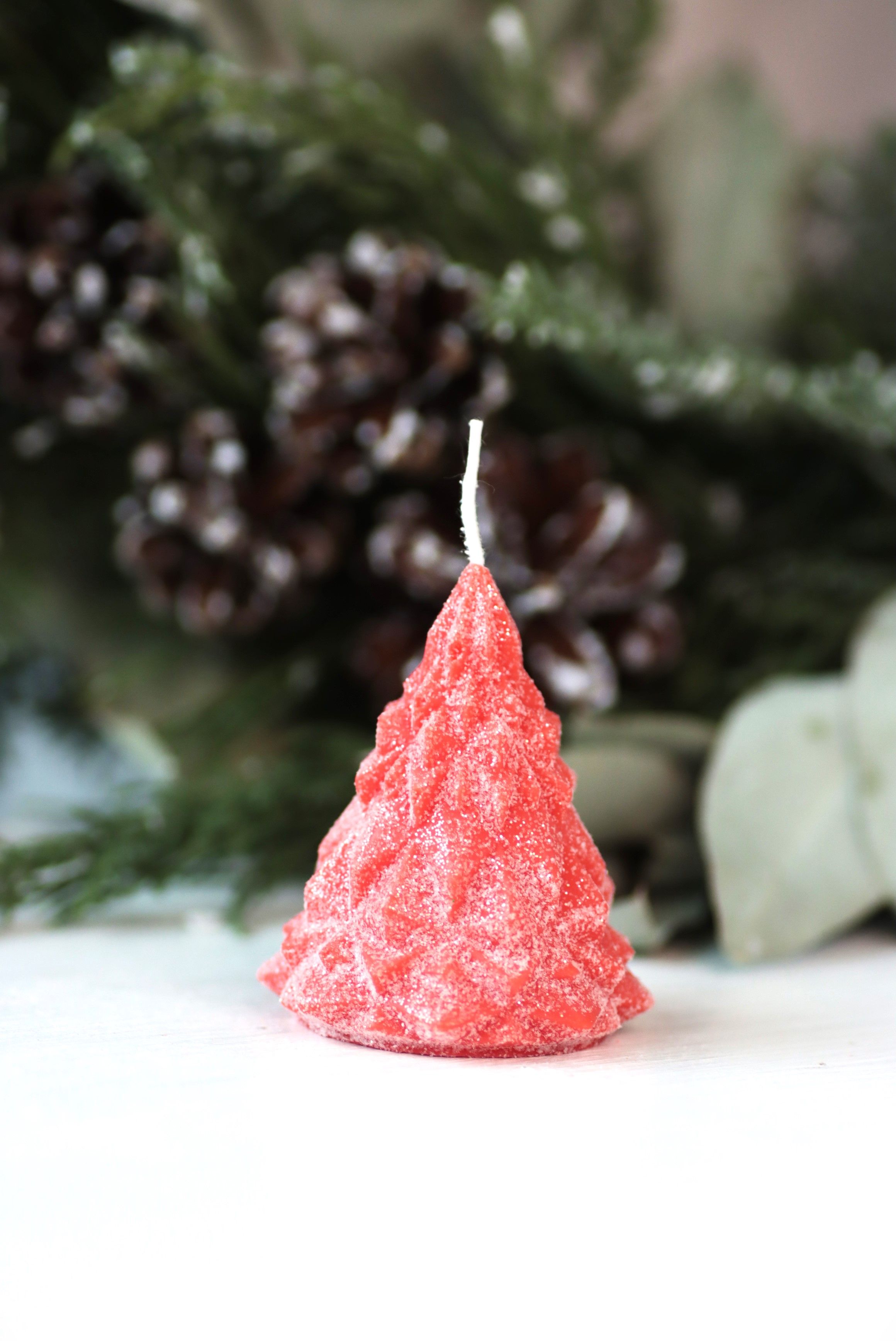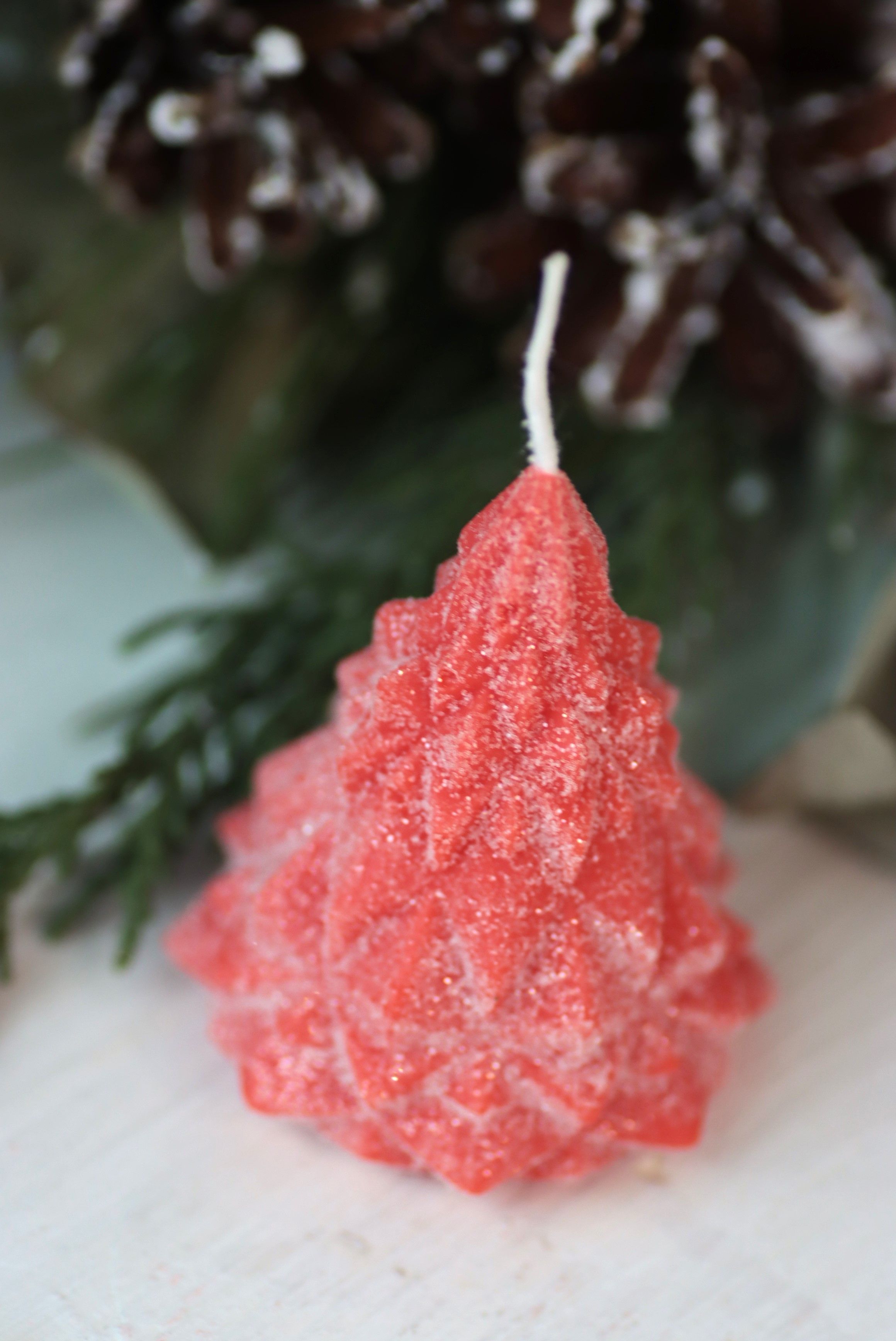Свеча "Ёлка хрусталь" Алый с блёстками