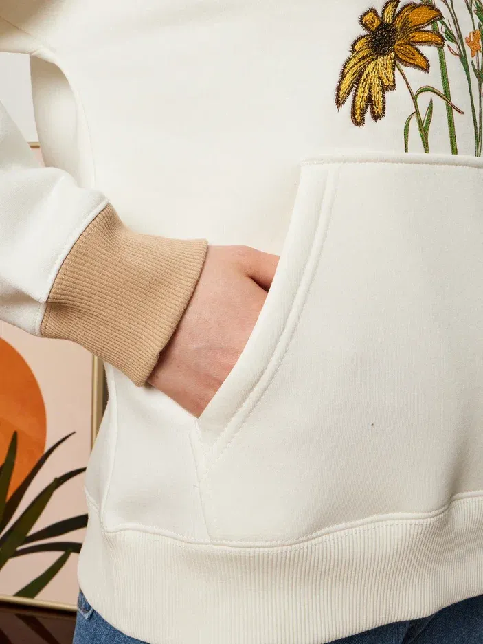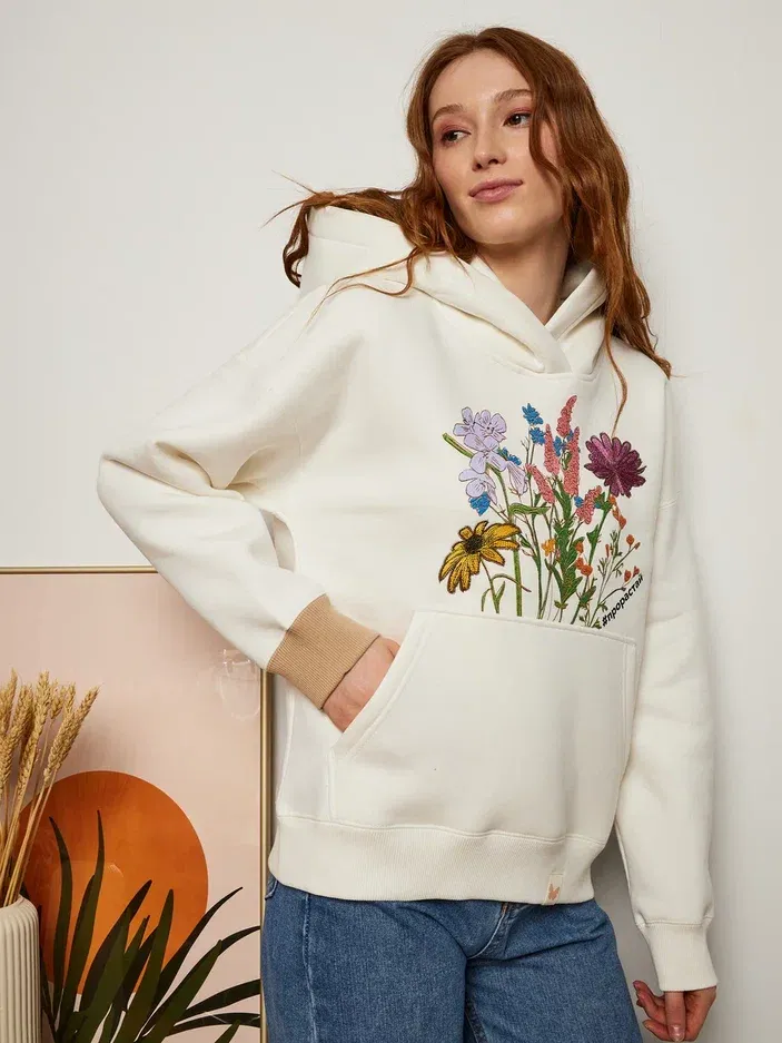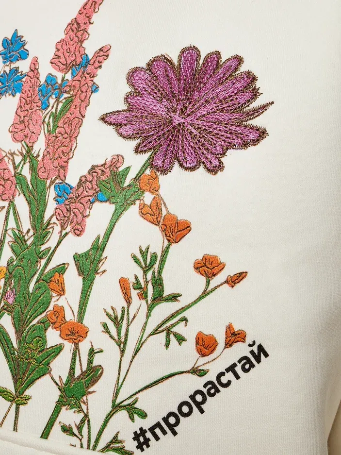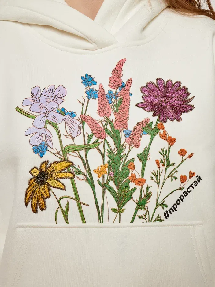 Дизайн худи - флористическая идея, что зарождается словно семя цветка, прорастающего из земли.