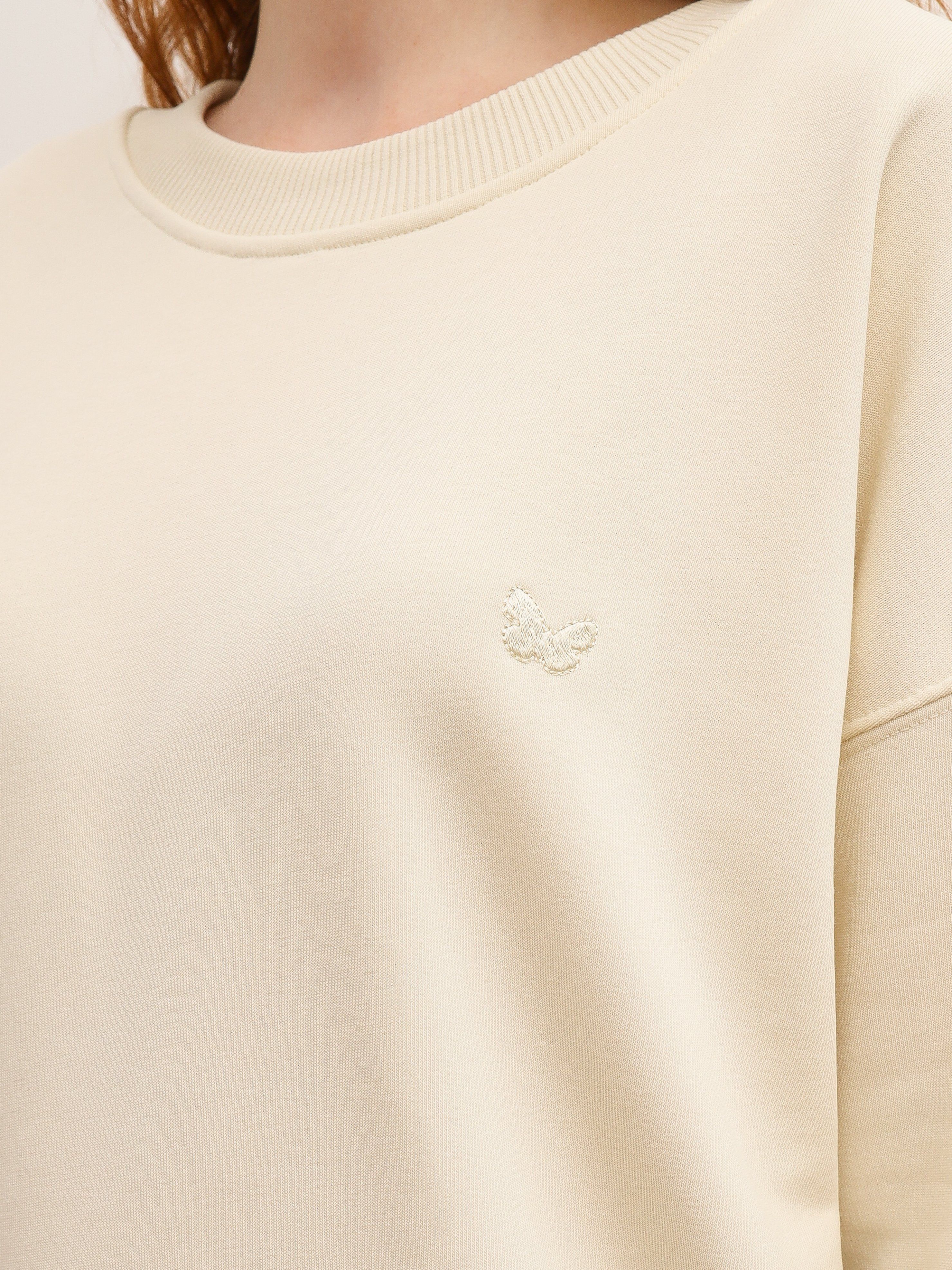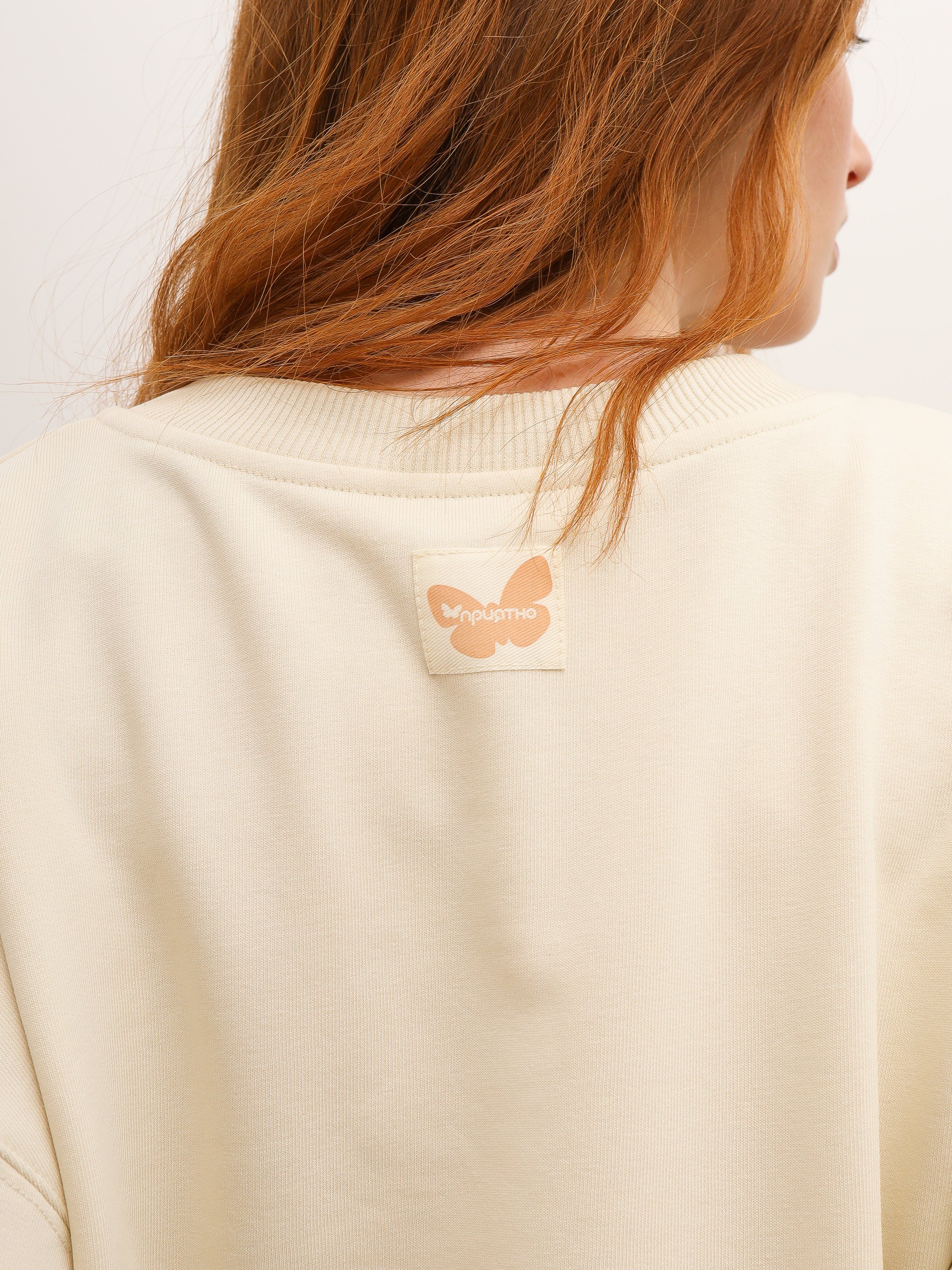 ПолДевушкиКонцепцияПриятноФормат одеждыСвитшотСостав материла70% хлопок, 30% ПЭСезонВесна-ЛетоМатериалТрикотажЦветМолочныйСтрана ПроизводительРоссия