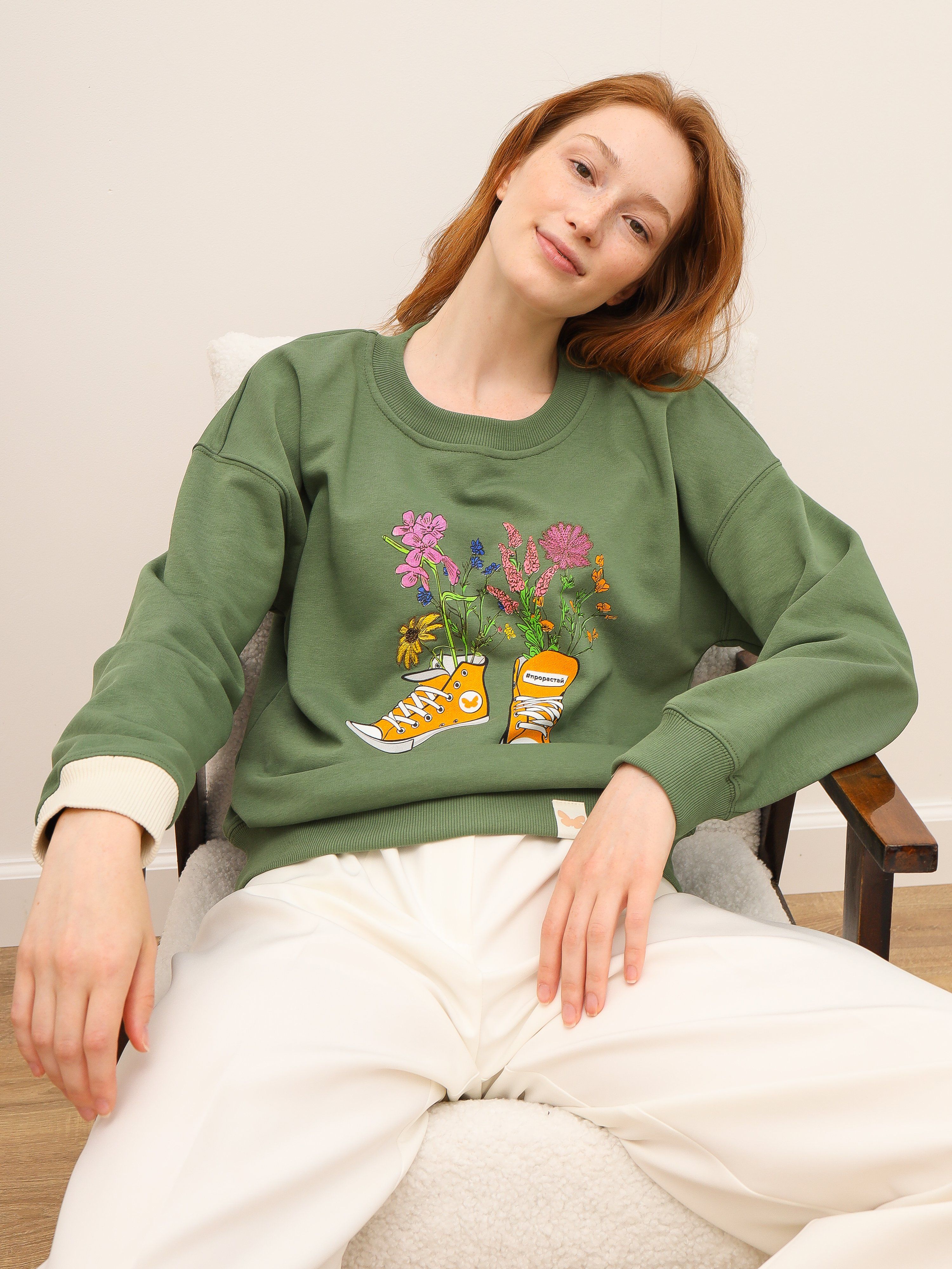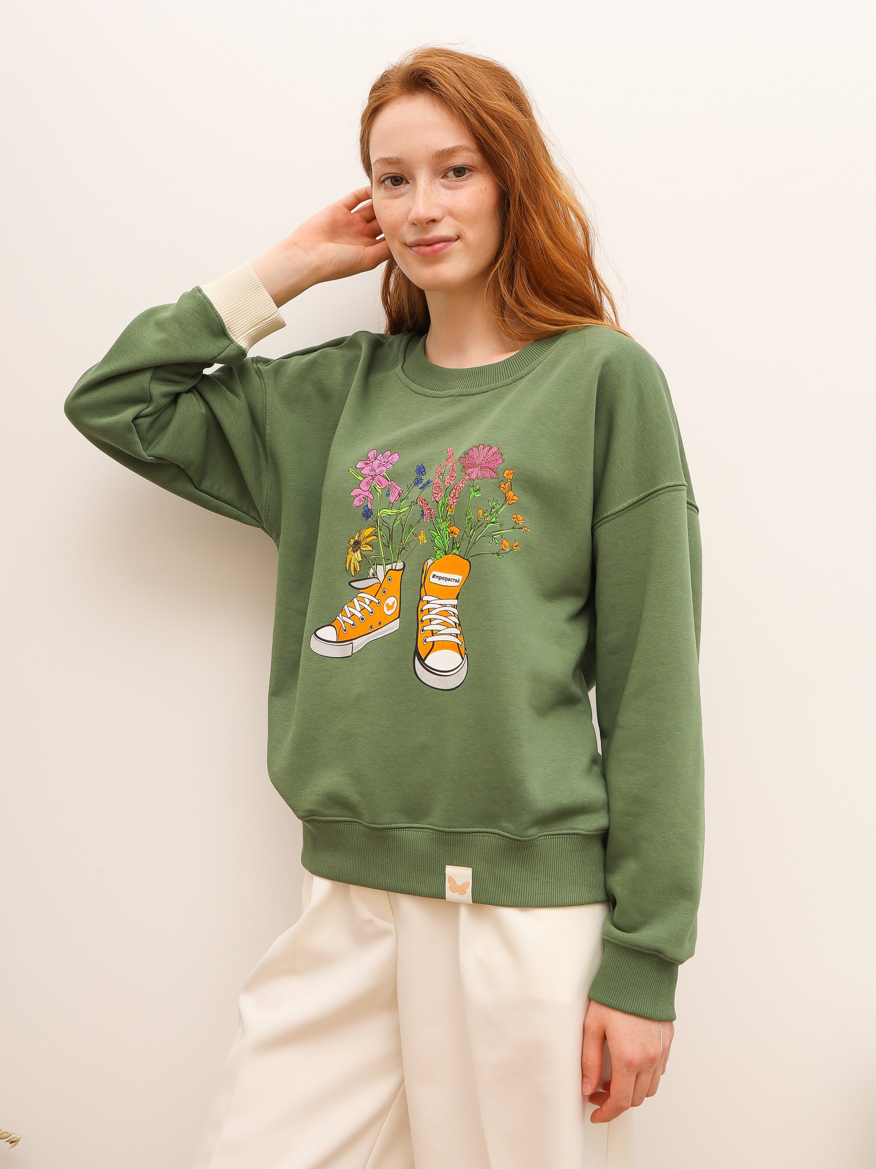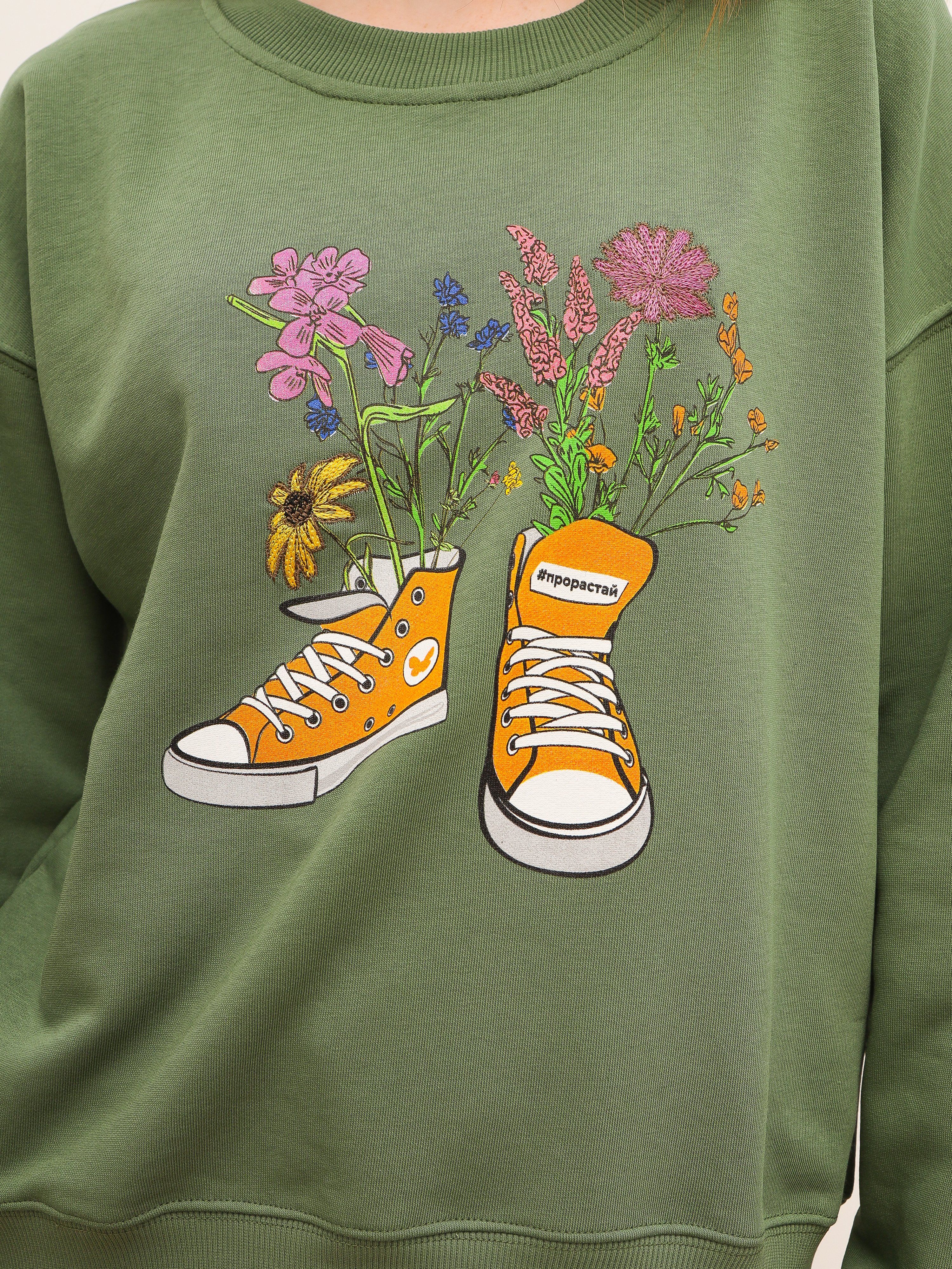 ЖЕНСКИЙ СВИТШОТ ОЛИВА "ЦВЕТОЧНЫЕ КЕДЫ"