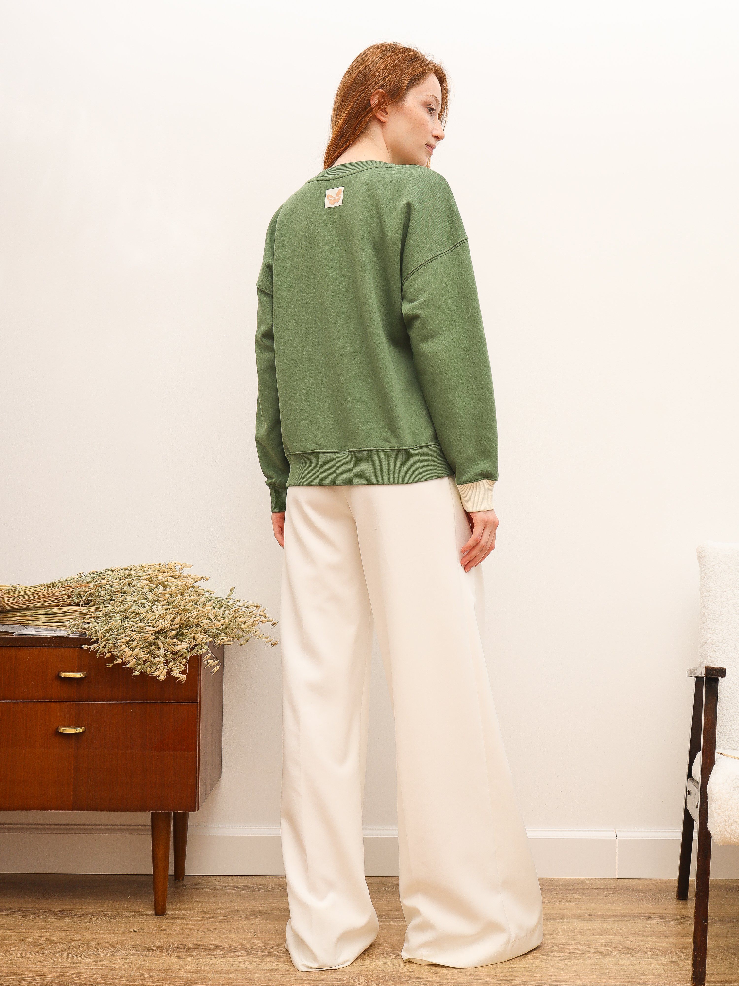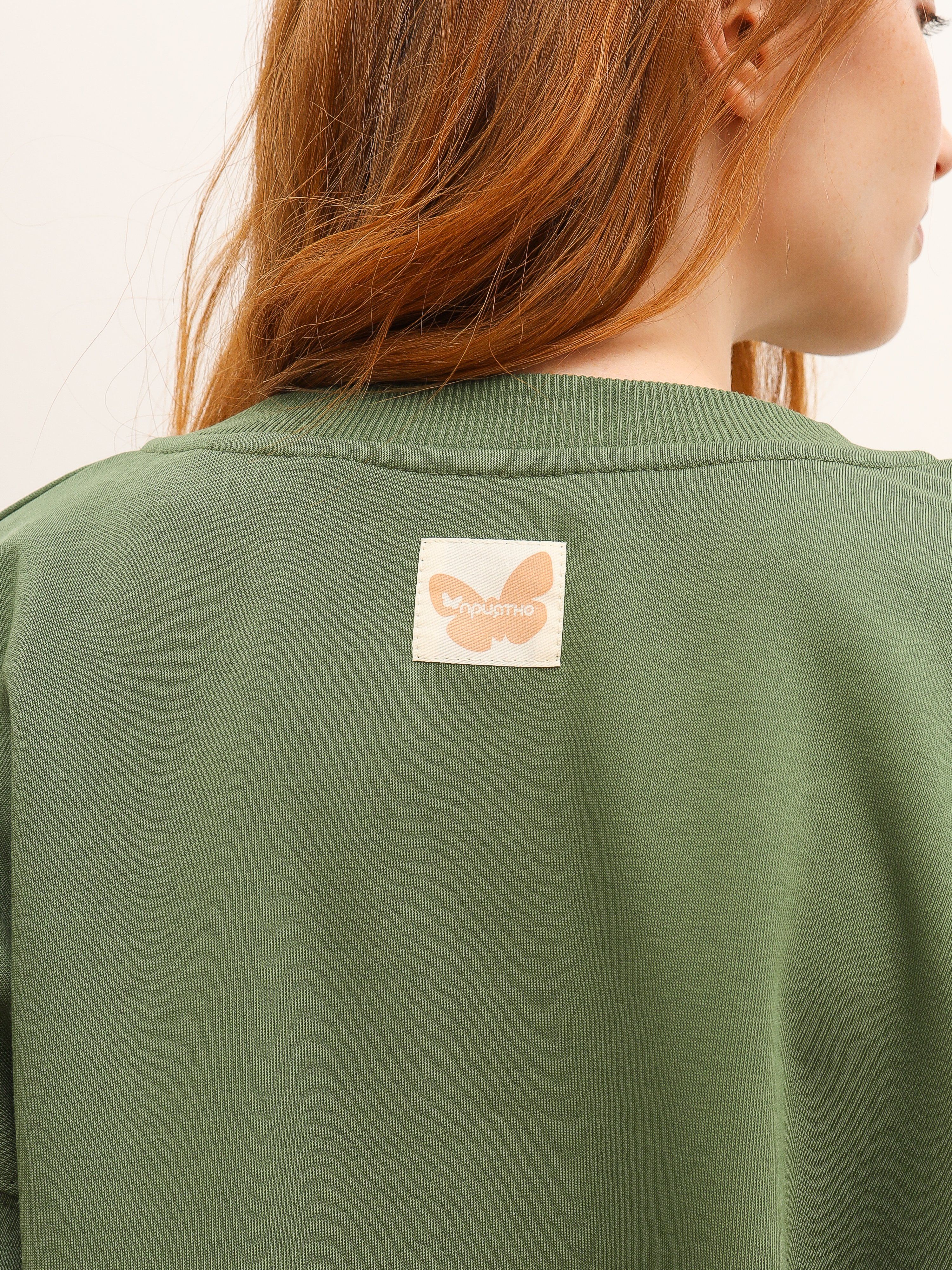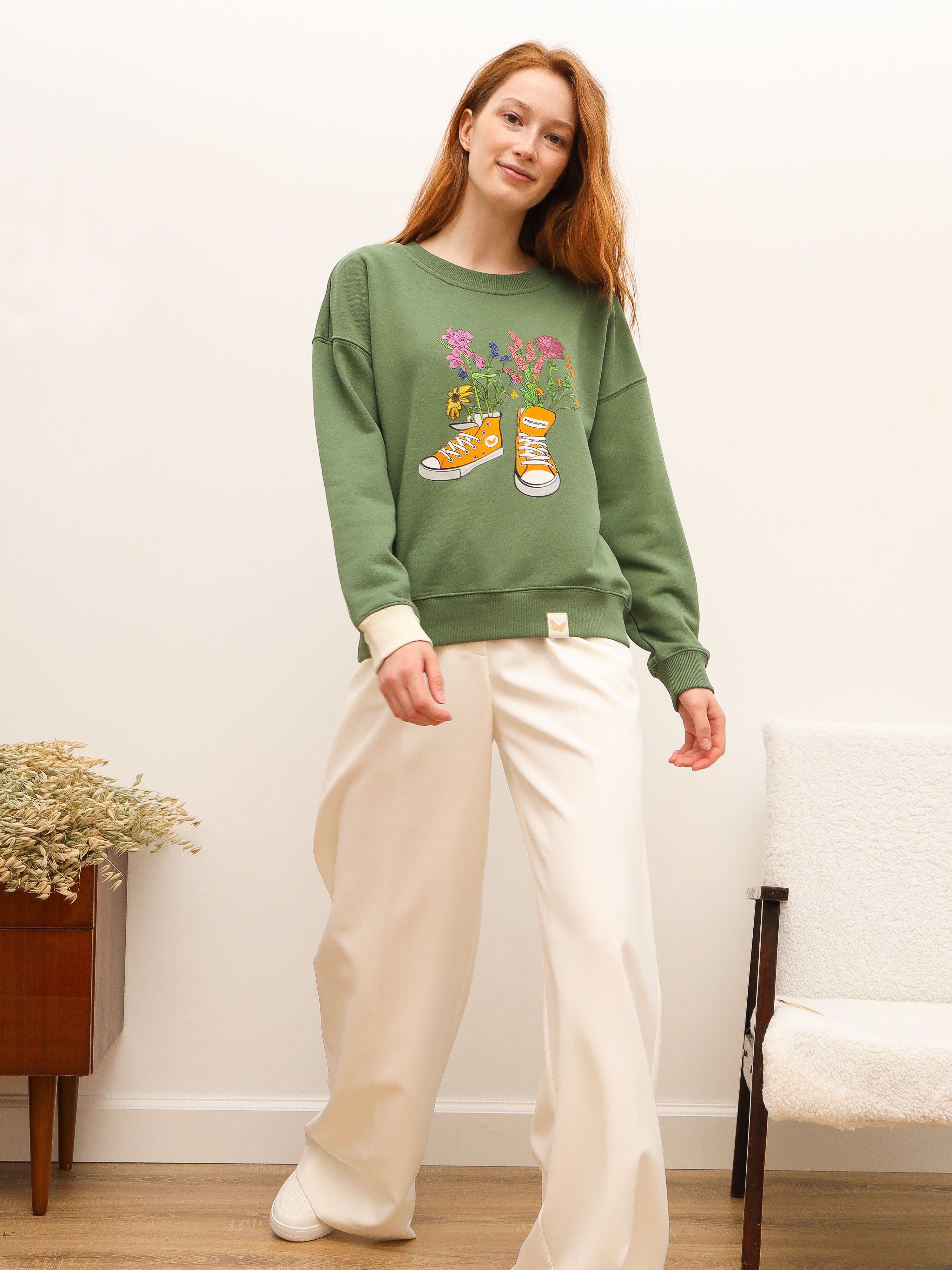 ЖЕНСКИЙ СВИТШОТ ОЛИВА "ЦВЕТОЧНЫЕ КЕДЫ"