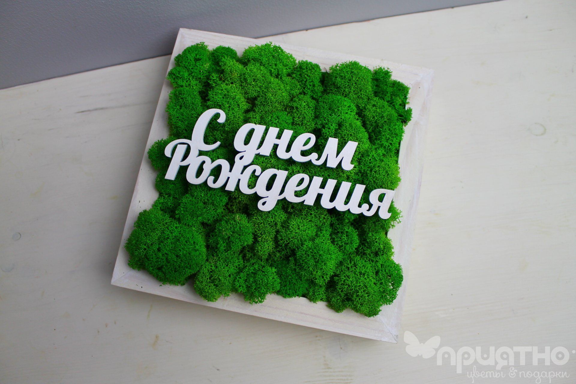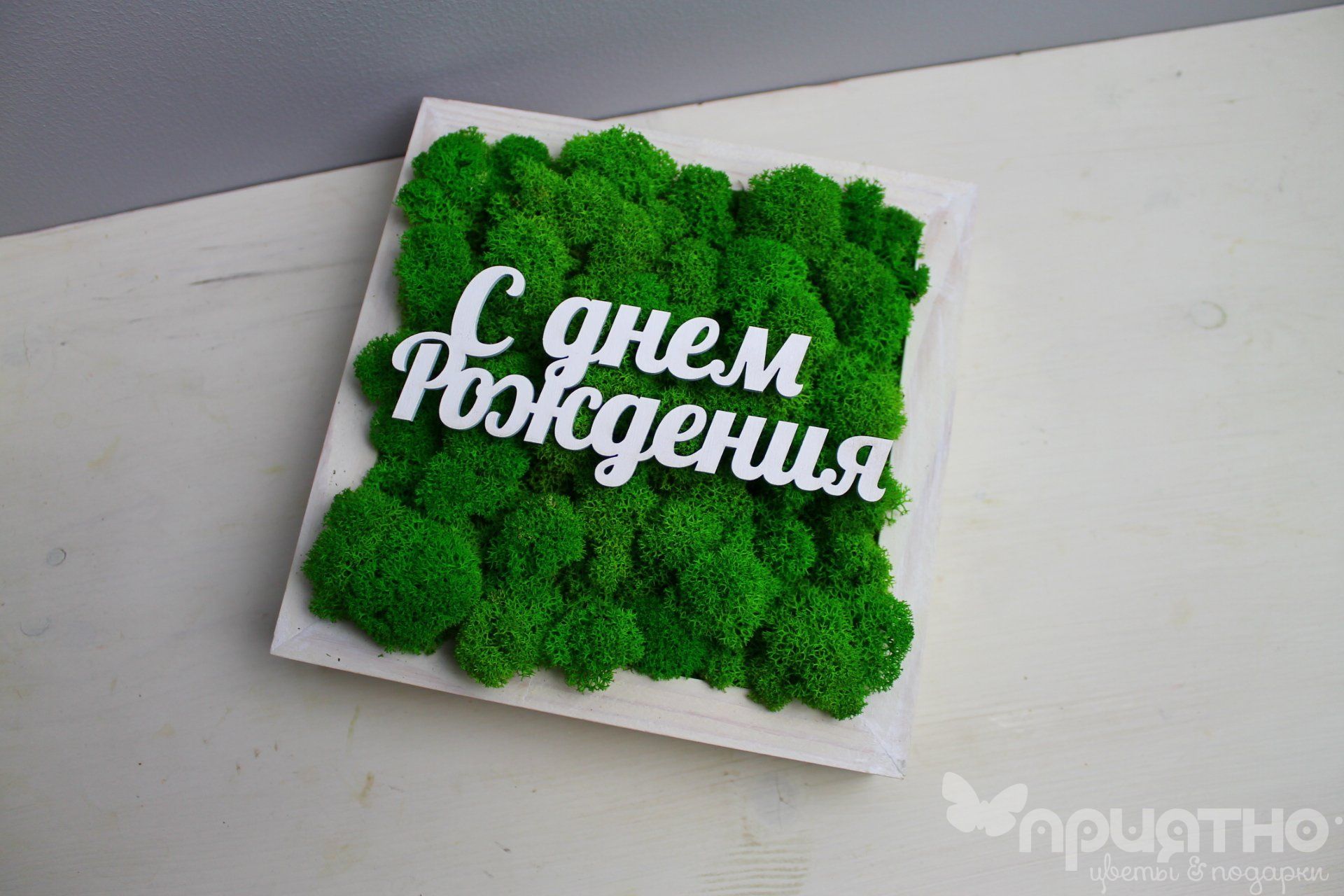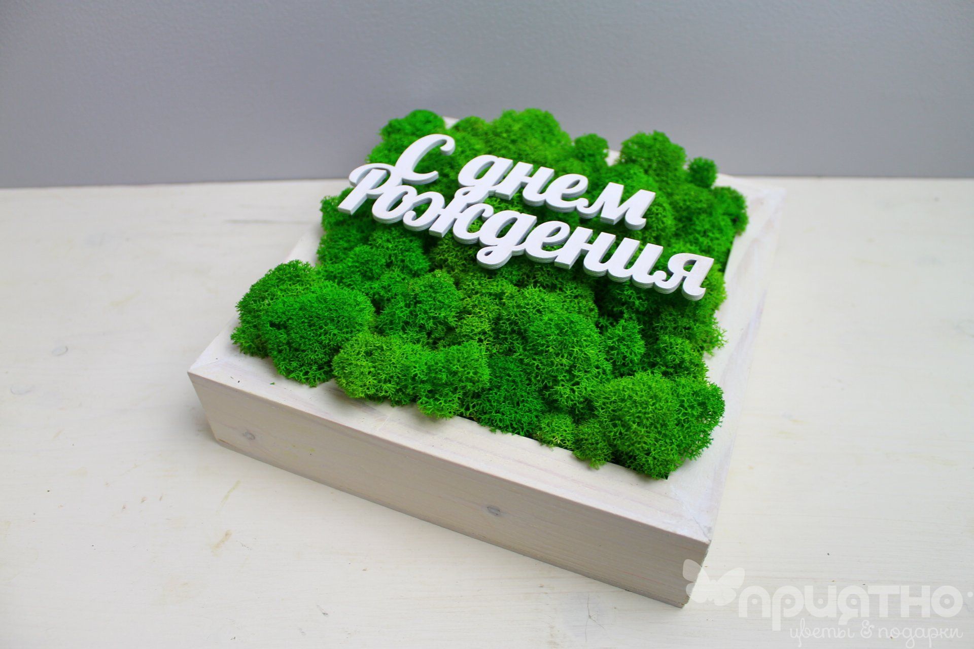 Материал: основа - дерево, стабилизированный мох-ягель, надпись - дерево
